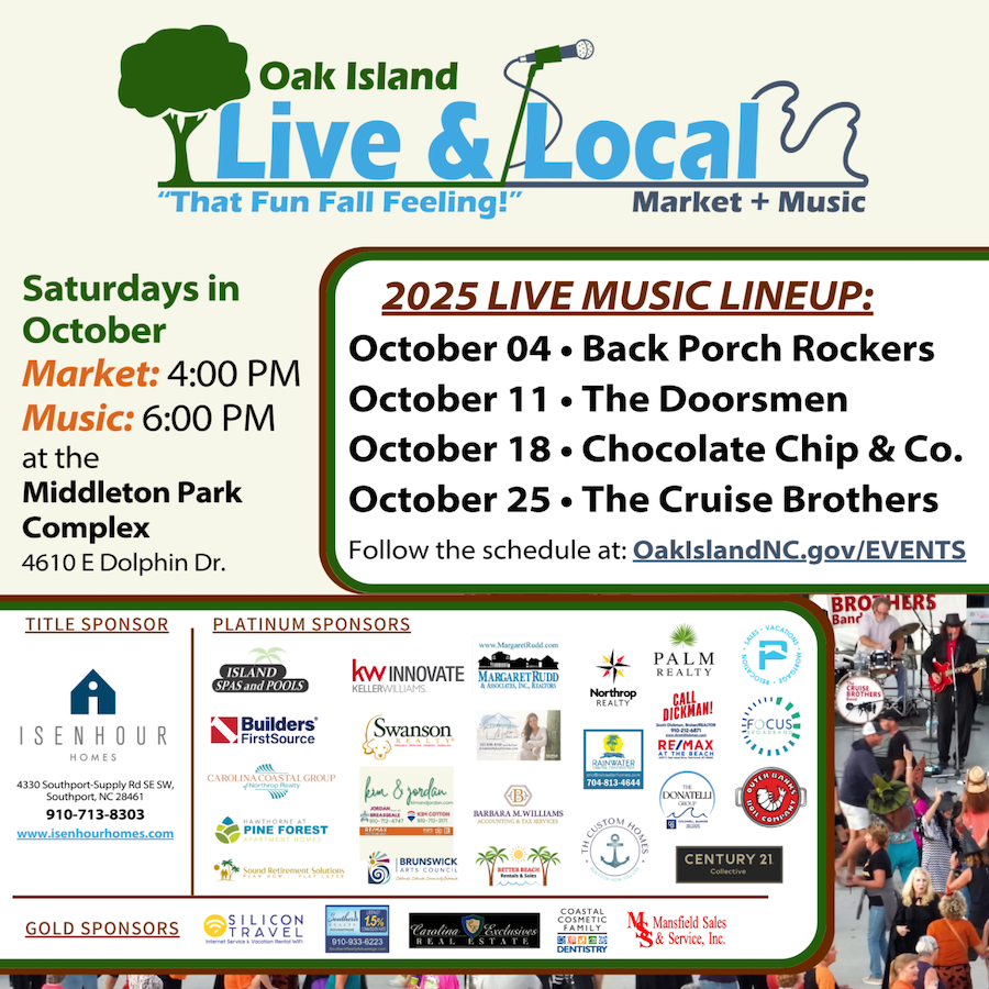 Already dreading the end of summer’s Farmer’s Market and Summer Concert Series? The FALL in love with the Town of Oak Island this autumn as we continue the best of summer living all season long!