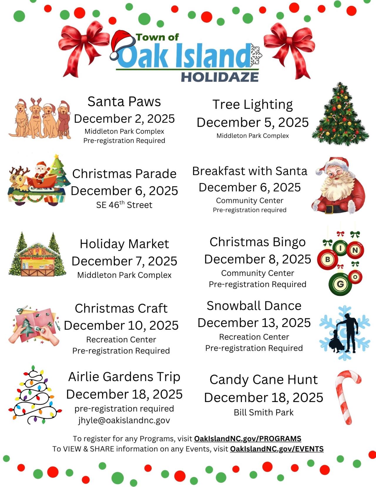 Oak Island has ten fantastic Holiday Events planned for you throughout the month of December!