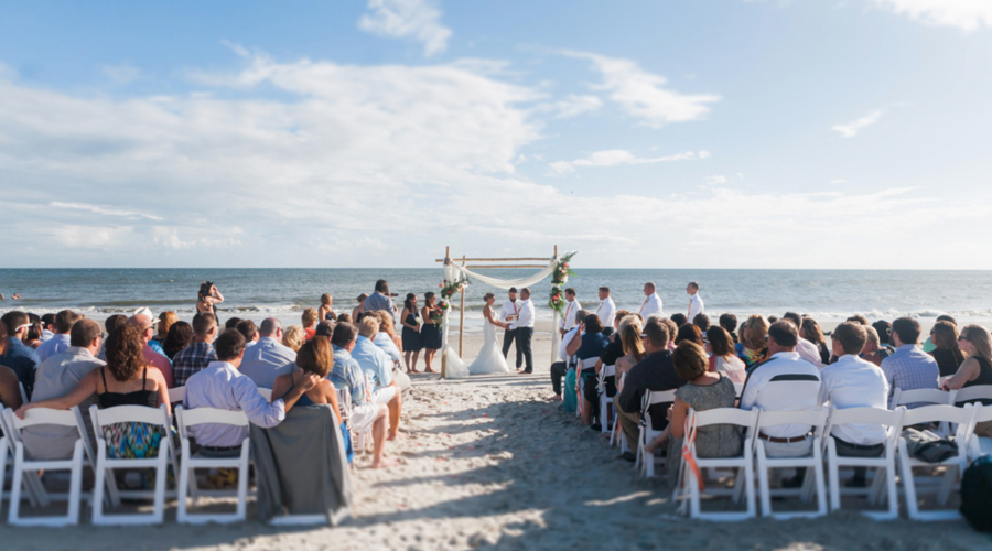 If you prefer a chapel setting for a ceremony, the quaint Bald Head Island Chapel is a picture-perfect spot for a more traditional wedding. After a chapel ceremony, you travel by golf cart through the canopy of live oaks to enjoy an oceanfront reception at the Shoals Club.