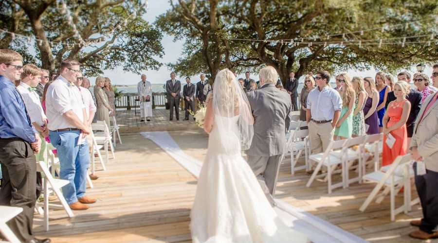 The quaint Bald Head Island Chapel is a picture-perfect spot for a more traditional wedding ceremony. Situated near the lighthouse, the windows behind the altar overlook Bald Head Creek. After a Chapel ceremony, your guests can enjoy a reception at the oceanfront Shoals Club overlooking Cape Fear and Frying Pan Shoals.